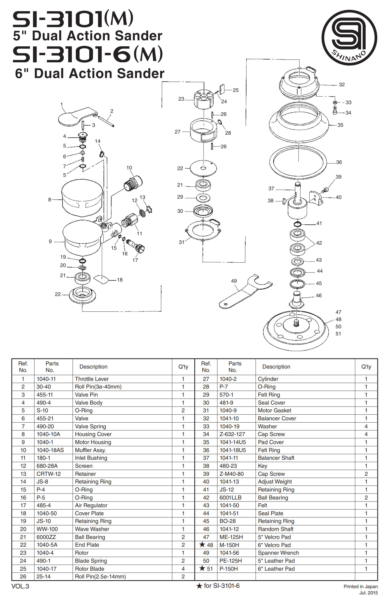 Thông số kỹ thuật máy chà nhám tròn 5" Shinano SI-3101: