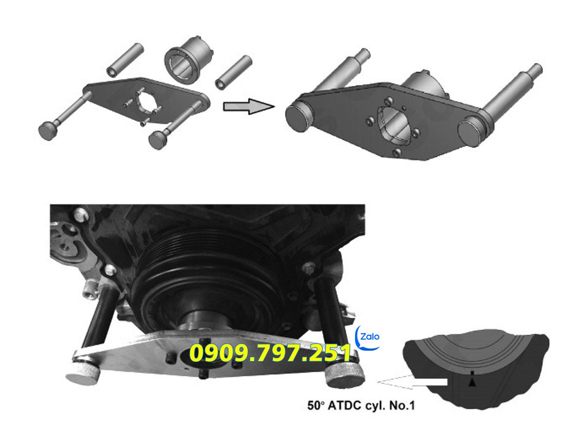 Bộ cân cam này cho phép thực hiện việc đặt trục cam đúng vị trí khi đại tu, thay thế trục cam, hoặc các sửa chữa thay thế khác liên quan.